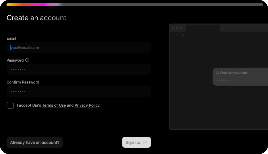 Dia is the AI browser that’s always up to speed. No more attaching or copy pasting — if it’s in your tabs, Dia already knows.