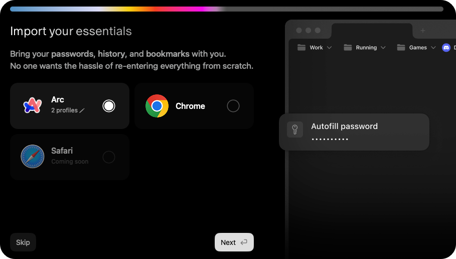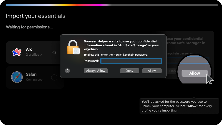 - Arc, Chrome, Safari 에서 설정을 불러올 수 있습니다.