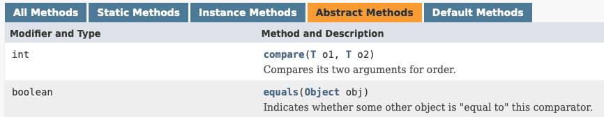 반드시 구현해야 하는 추상 메소드는 compare 메소드 한 개 입니다.