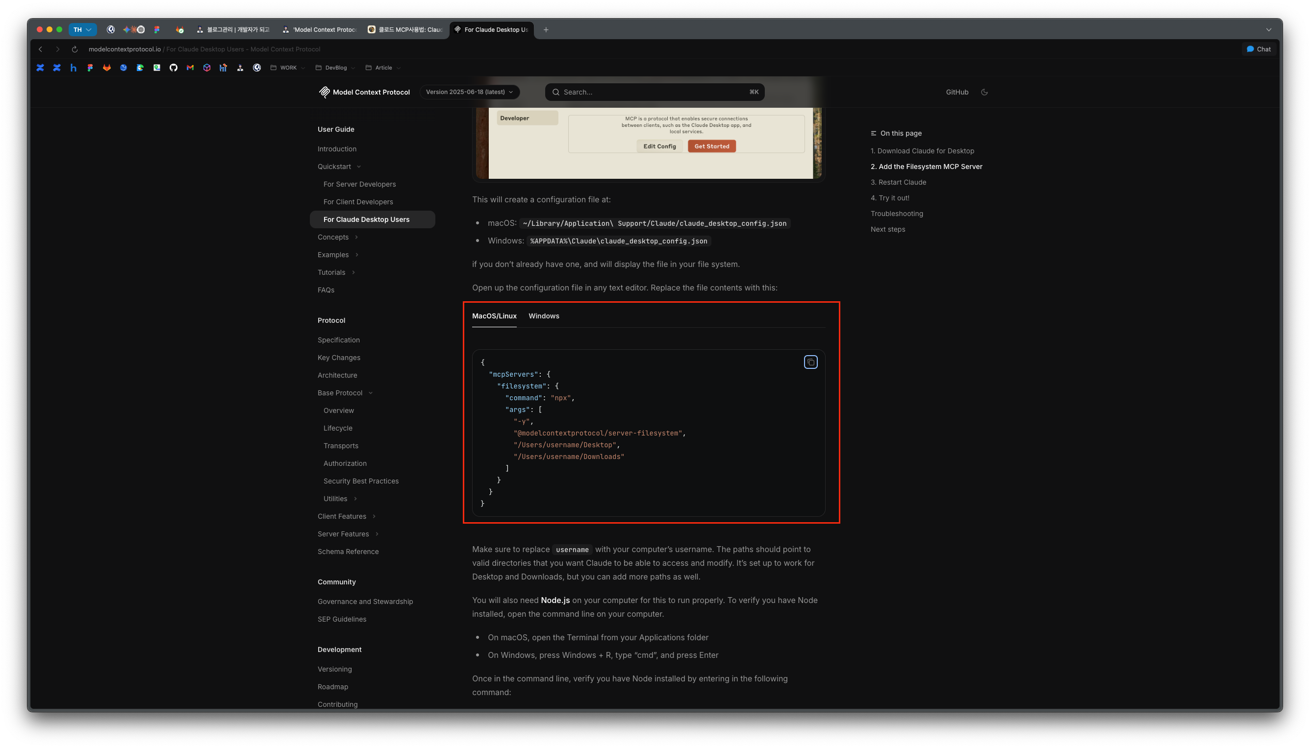 - 공식 문서에 있는 내용을 mcpServers의 내용만 복사하여 붙여 넣었습니다.