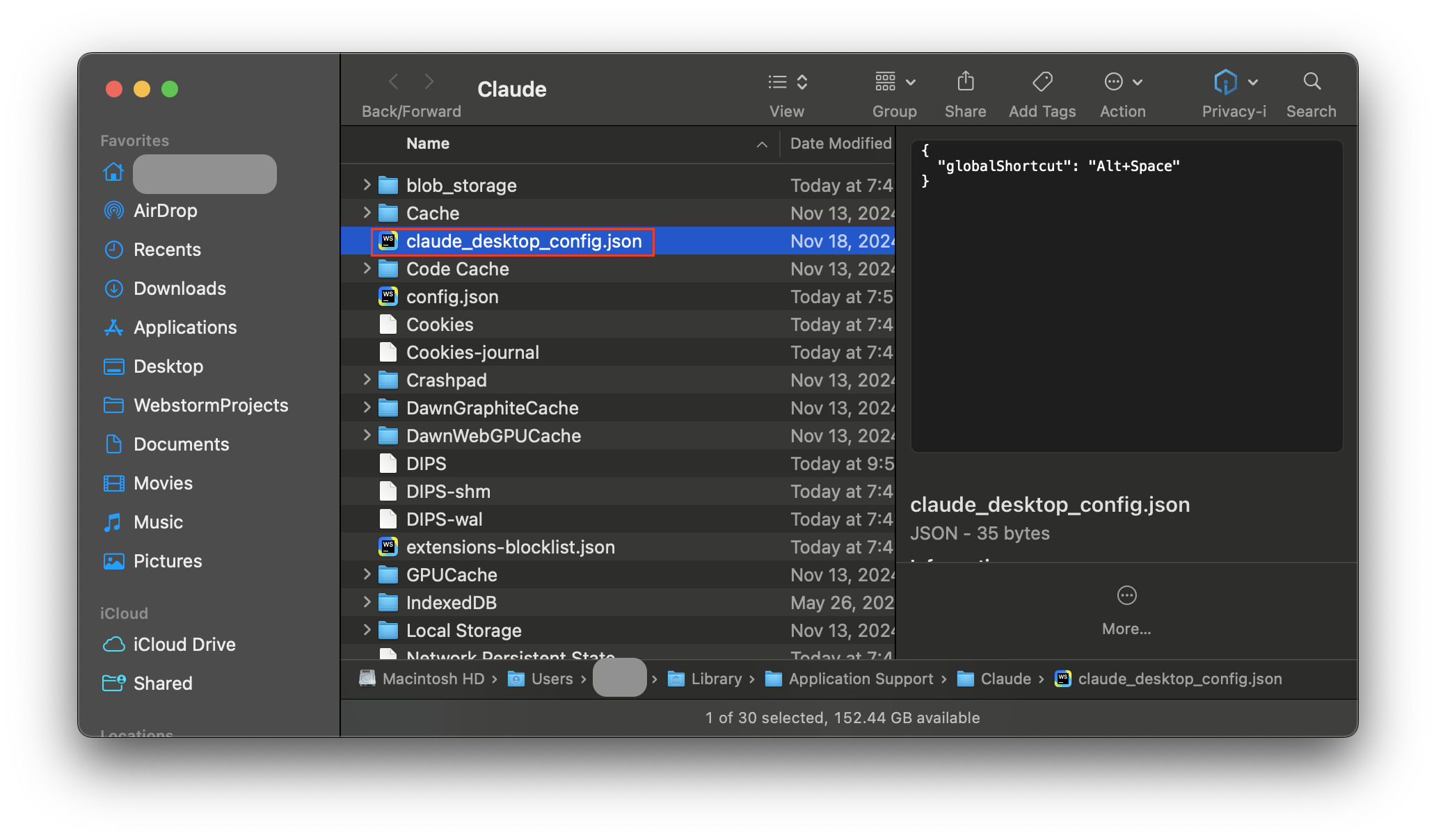 - macOS: ~/Library/Application\ Support/Claude/claude_desktop_config.json